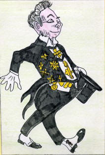 bretelle ed indossava scarpe e cappello neri. Aveva una faccia buffa e faceva